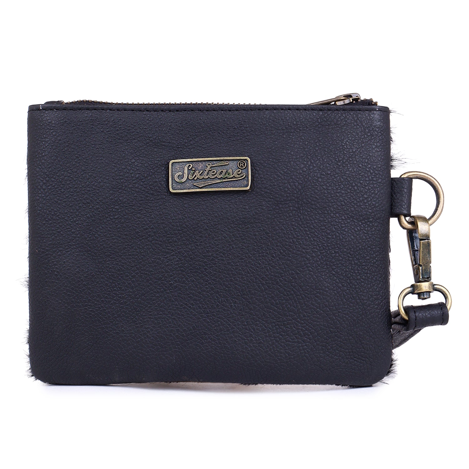 Sixtease's Rustic Treasures Wristlet: Vintage Leather, Rustic Hairon Design - Carry a Touch of Rustic Charm in Every Treasure! - (SB-7123)