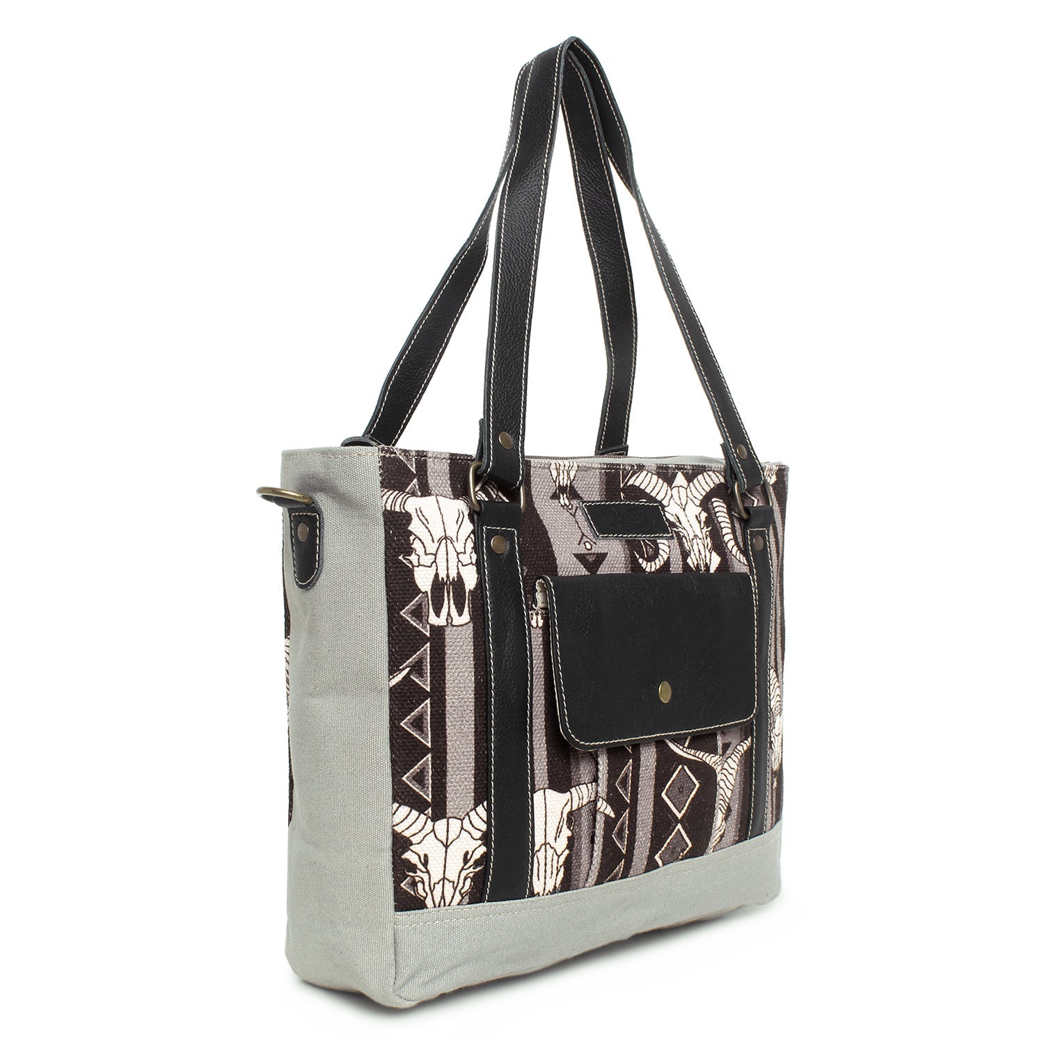 Sixtease Up-cycled Canvas Functional Tote Bag: Sustainable Style, Urban Versatility, Perfect for Effortless Everyday Adventures! - (SB-4140)