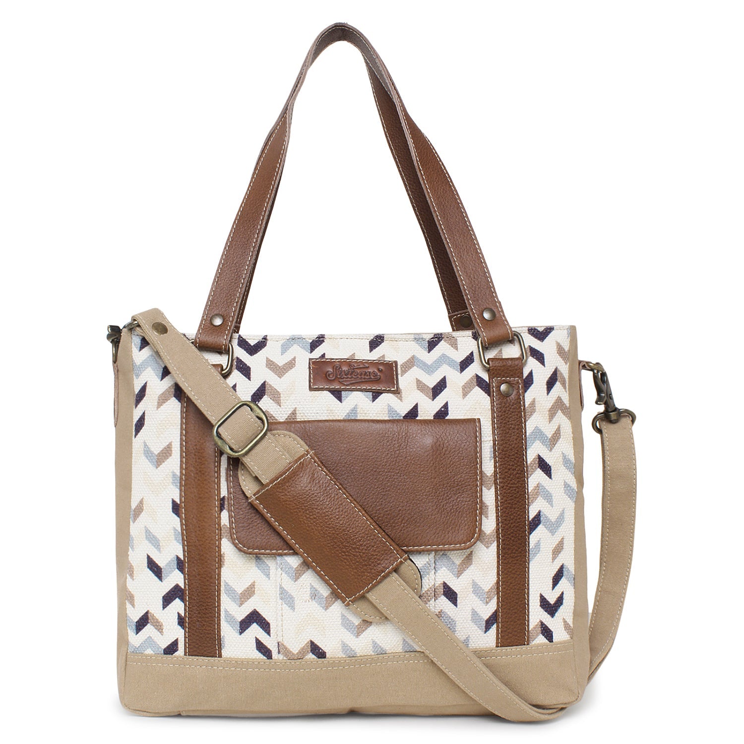 Sixtease Up-cycled Canvas Functional Tote Bag: Sustainable Style, Urban Versatility, Perfect for Effortless Everyday Adventures! - (SB-4292)