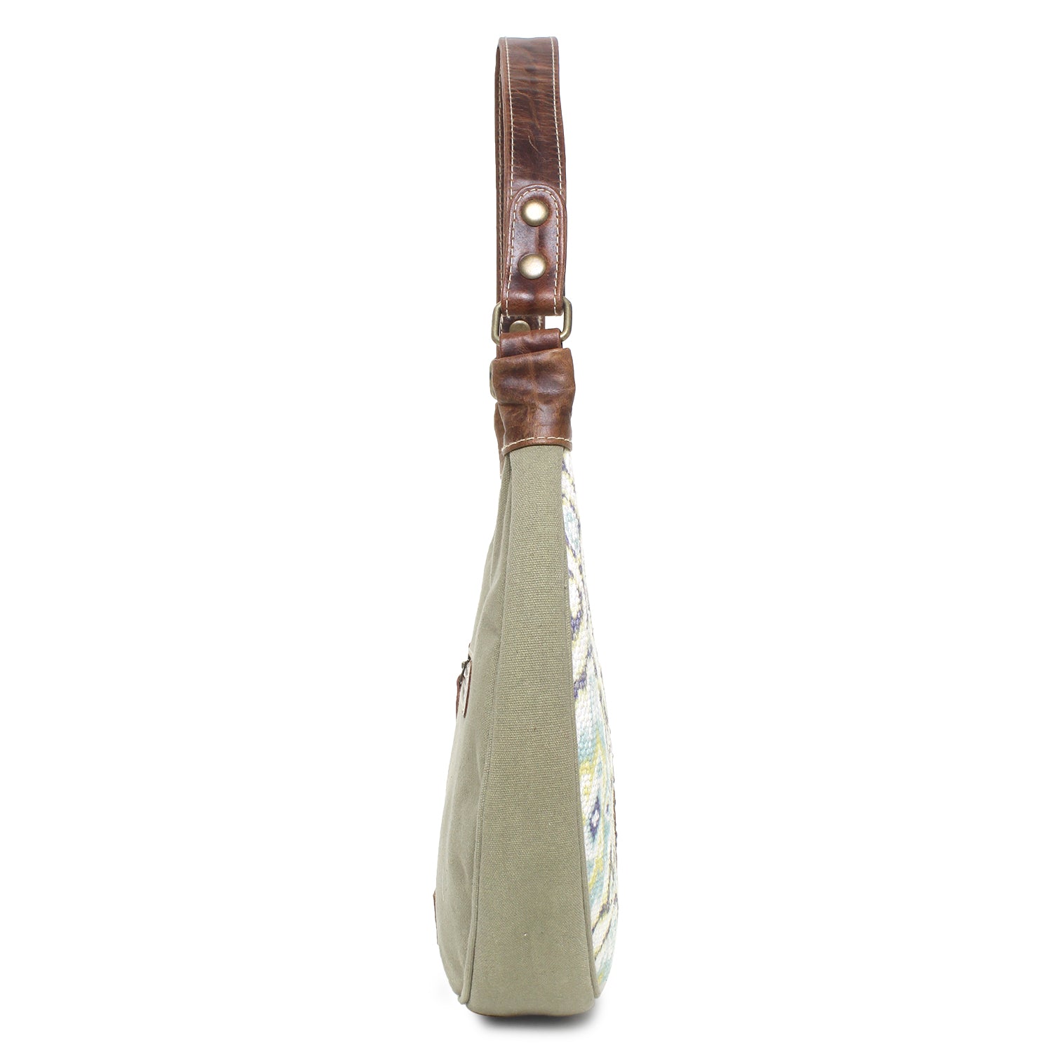 Sixtease Up-cycled Canvas Hobo Bag: Eco-Chic Carryall for Fashion-Forward Individuals Embracing Sustainable Style! - (SB-4012)