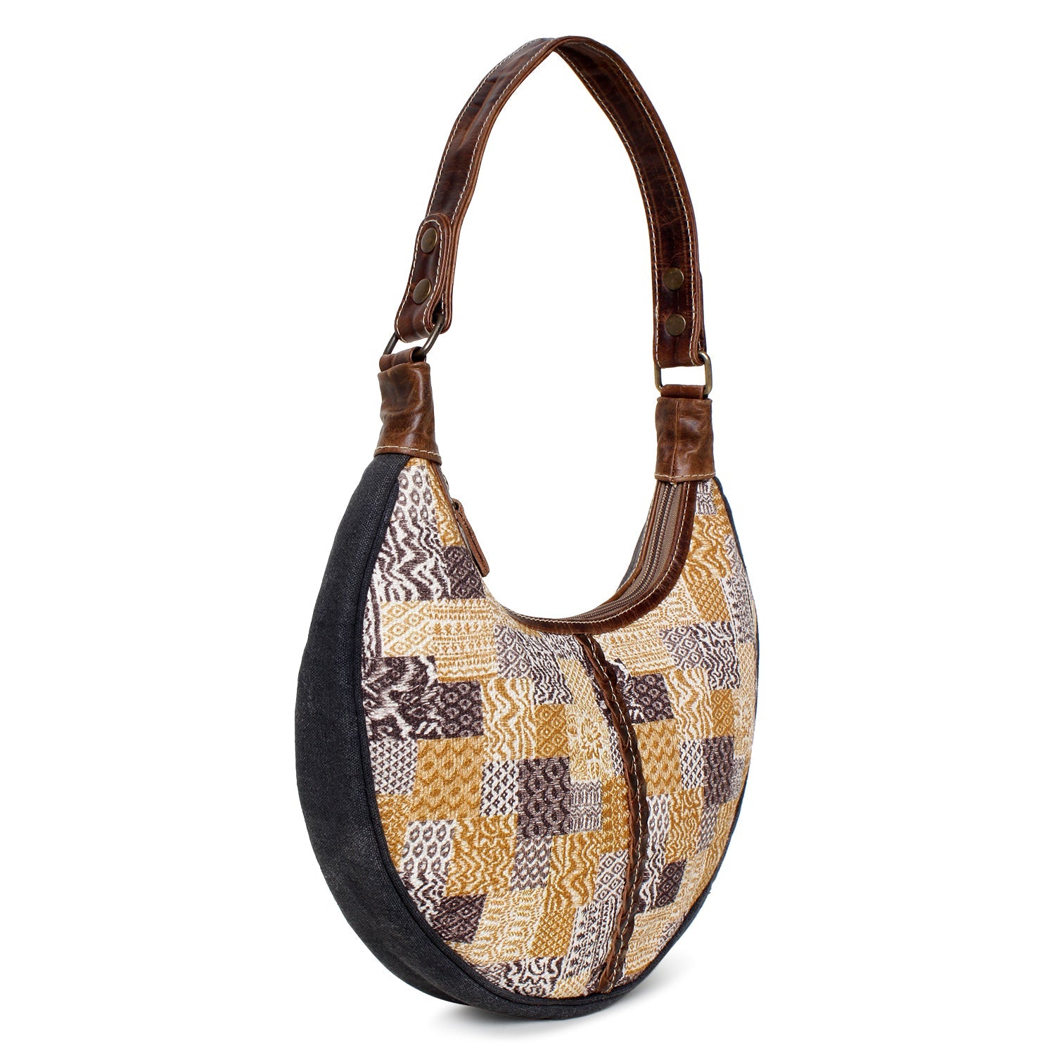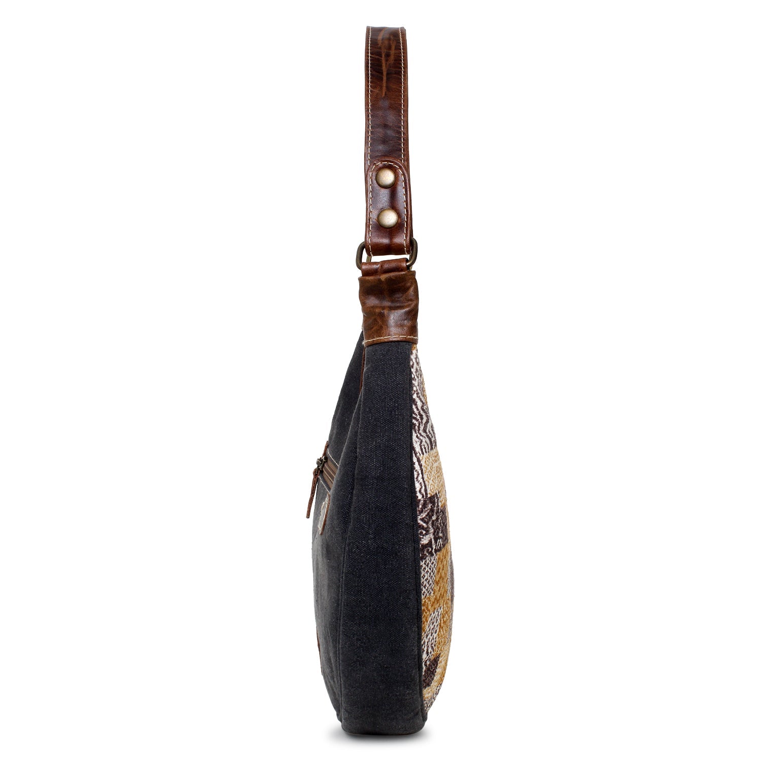 Sixtease Up-cycled Canvas Hobo Bag: Eco-Chic Carryall for Fashion-Forward Individuals Embracing Sustainable Style! - (SB-4278)