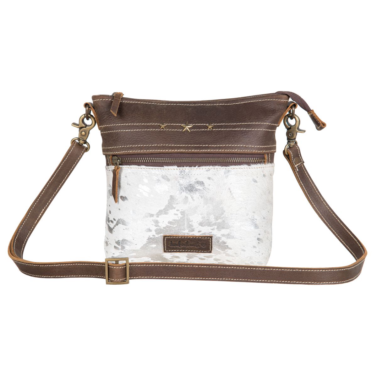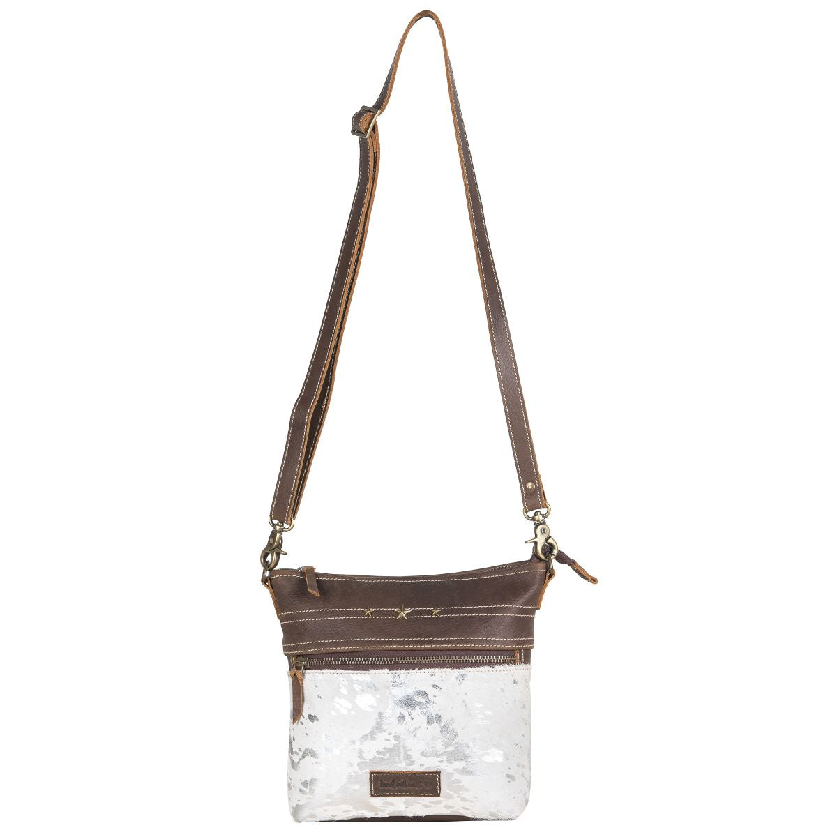 Silver Leather & Hairon Small Crossbody Bag by Sixtease - Effortless Elegance for Every Occasion! - (SB-2514)