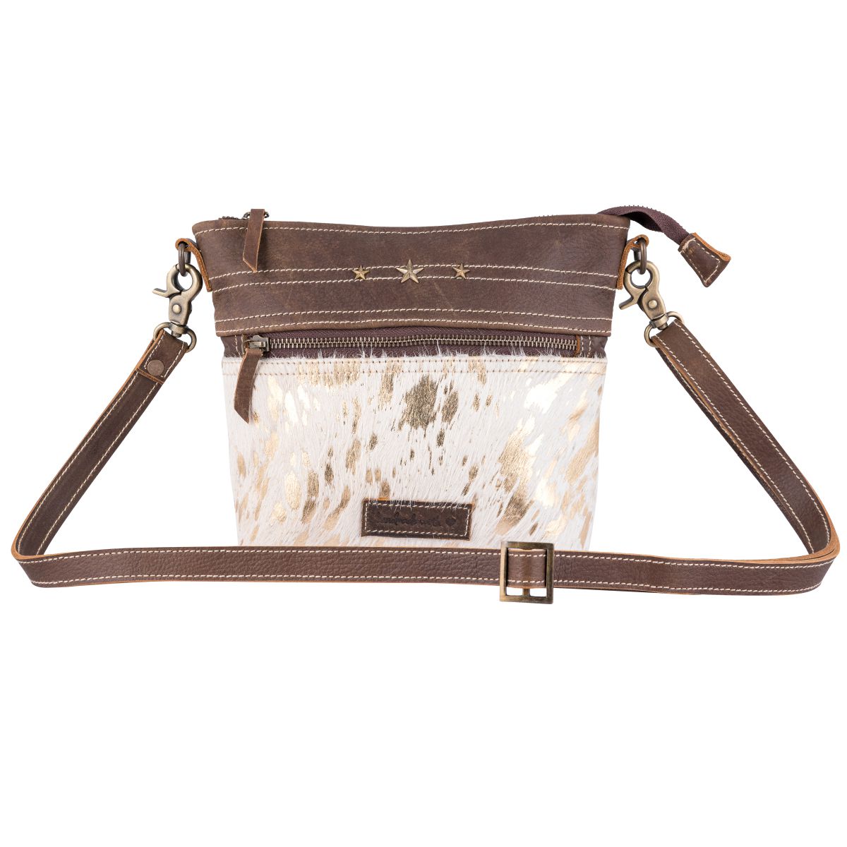 Gold Leather & Hairon Small Crossbody Bag by Sixtease - Effortless Elegance for Every Occasion! - (SB-2515)