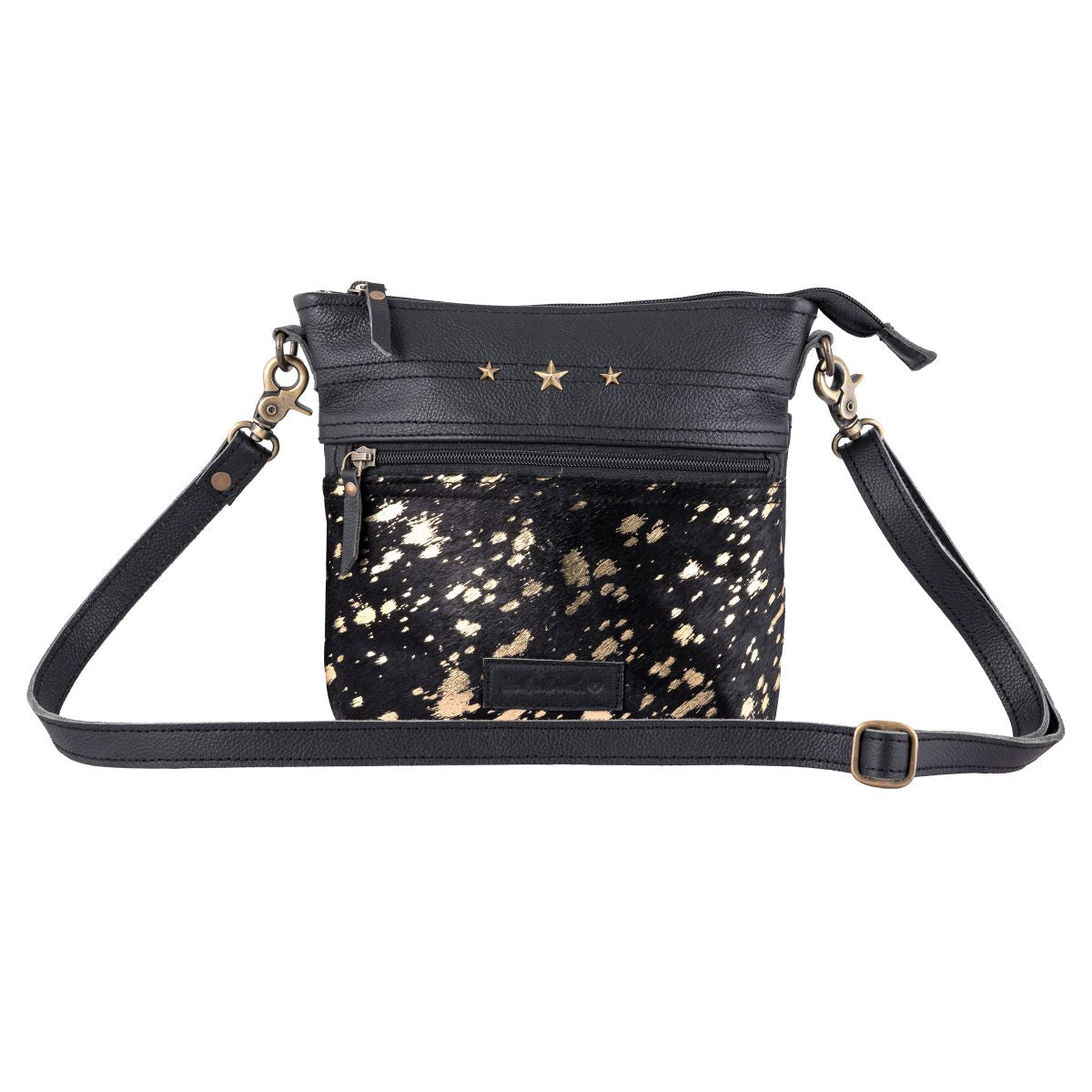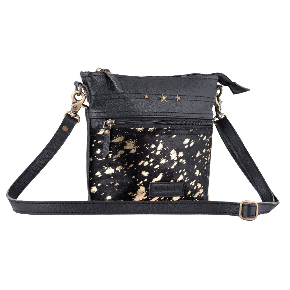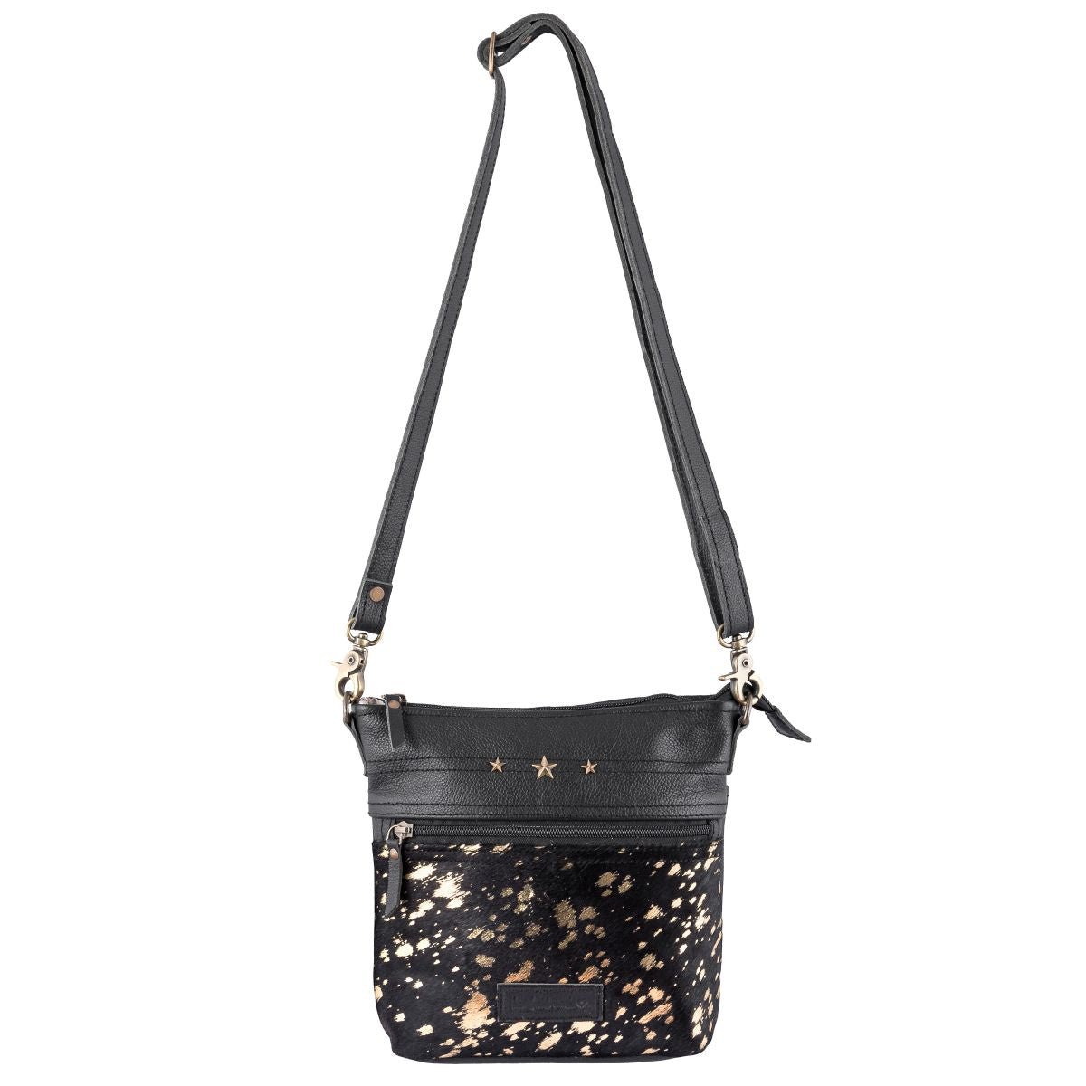 Introducing the Leather & Hair Small Cross-Body Bag by Sixtease – your stylish companion for on-the-go adventures. Crafted with finesse, its exterior boasts a slip pocket with snap closure in front and a zip pocket at the back for easy access. Inside, find a spacious main compartment with zip and slip pockets. The poly cotton step logo lining ensures durability, while brass and zinc fittings add elegance. Sized at 7.5 H x 9.5 W x 2.25 D, with a 48" adjustable shoulder strap, it's perfect for everyday use. Secure belongings with ease using the YKK metal zipper closure. Elevate your style with Sixtease.