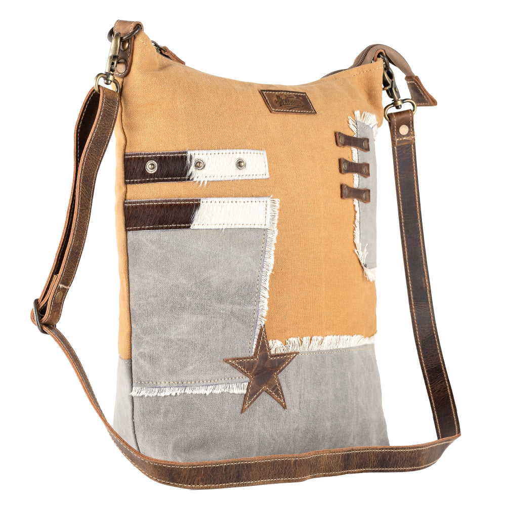 Sixtease Mandarin Up-cycled Canvas Shoulder Bag: Infuse Your Style with a Zest of Sustainable Elegance, Where Urban Sophistication Meets Eco-Conscious Design! - (SB-3125)