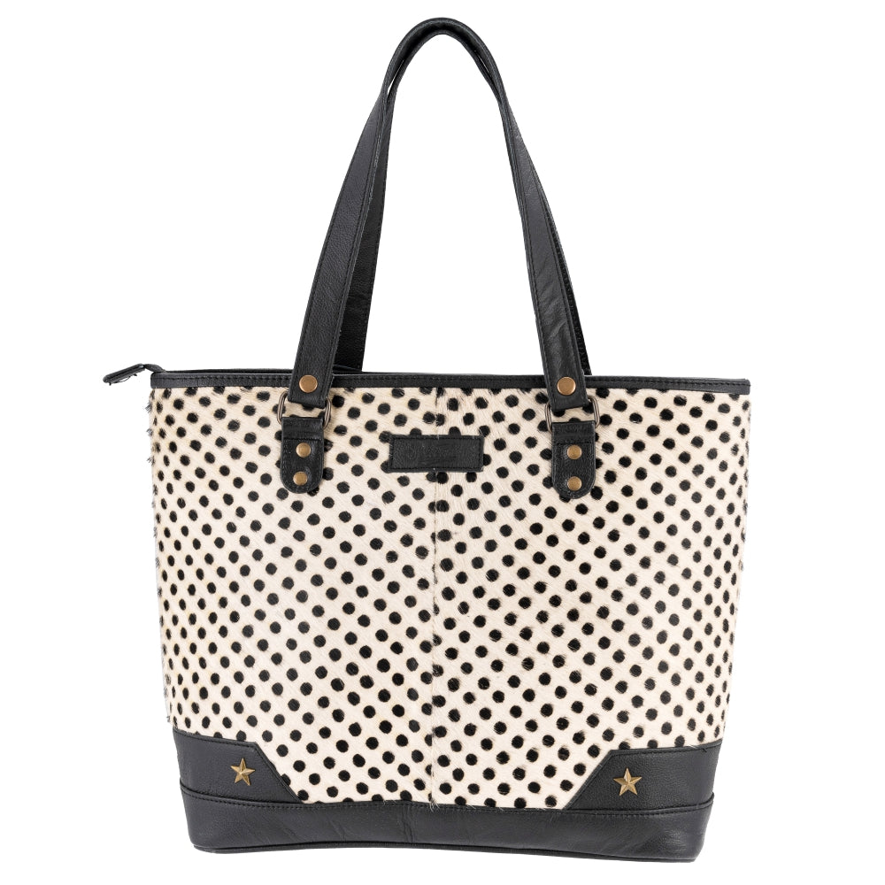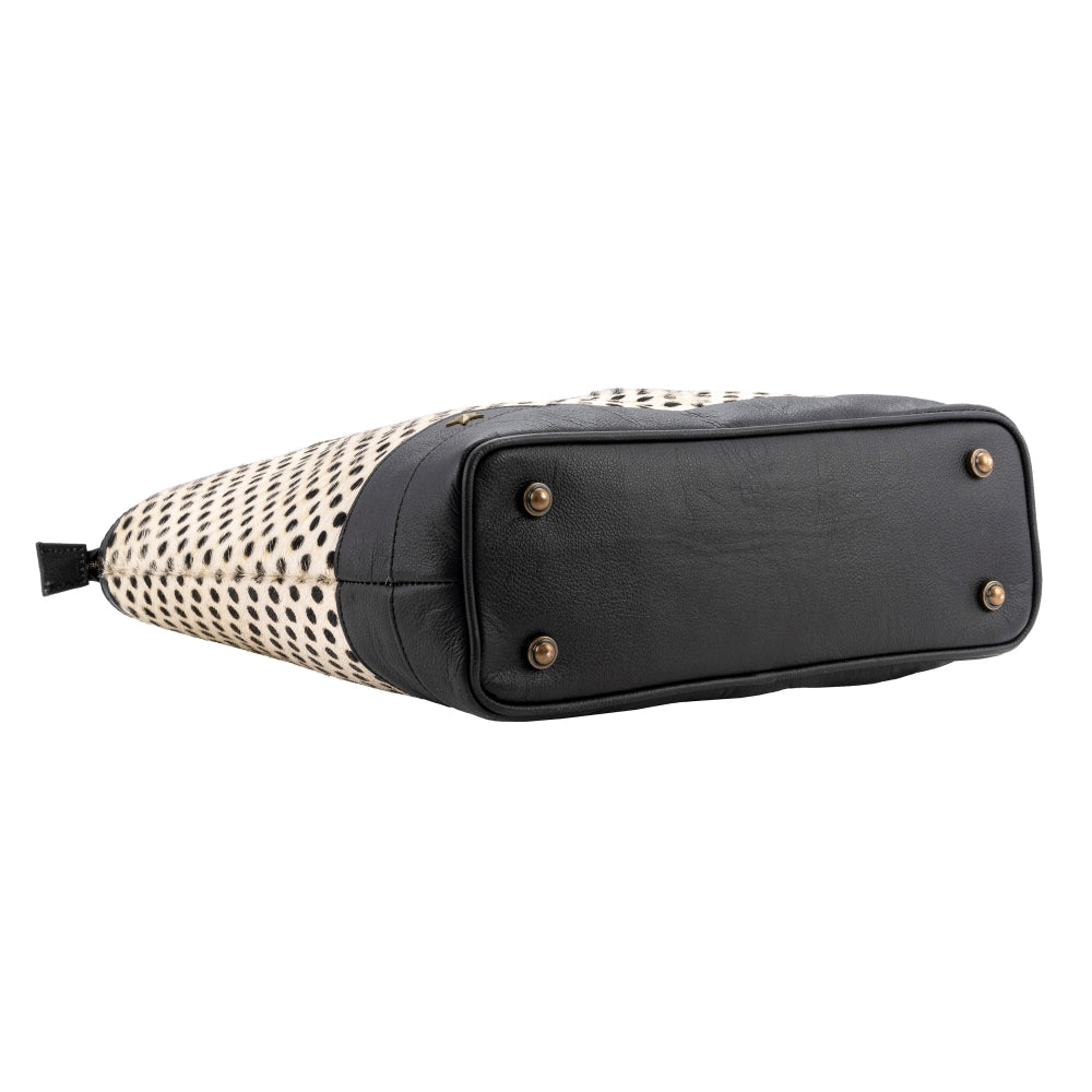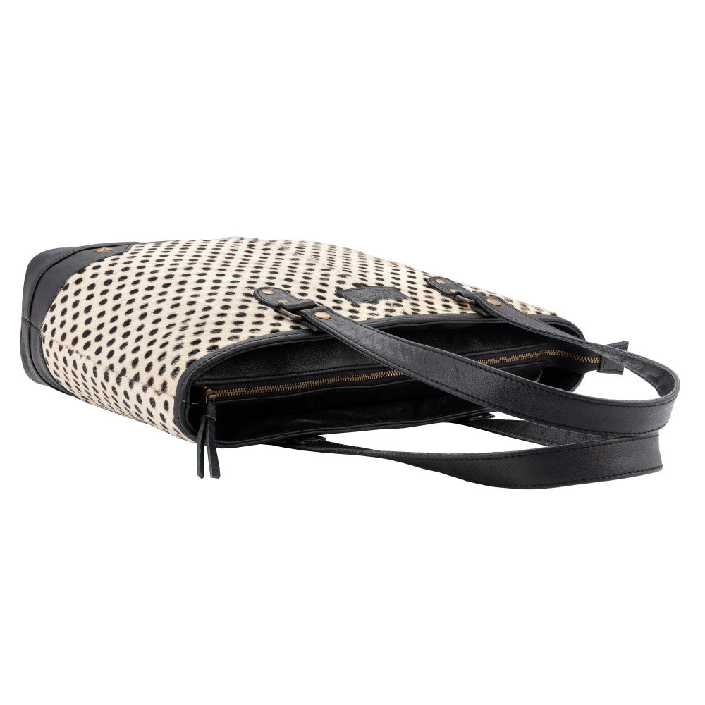 Polka Dot Leather & Hairon Tote Bag by Sixtease - Urban Chic with a Touch of Glamour! - (SB-3408)