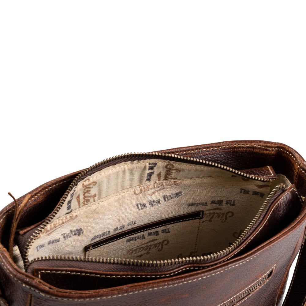 Utility (Inside):Main compartment with 1 Zip pocket and 1 slip pocket with leather detailing.