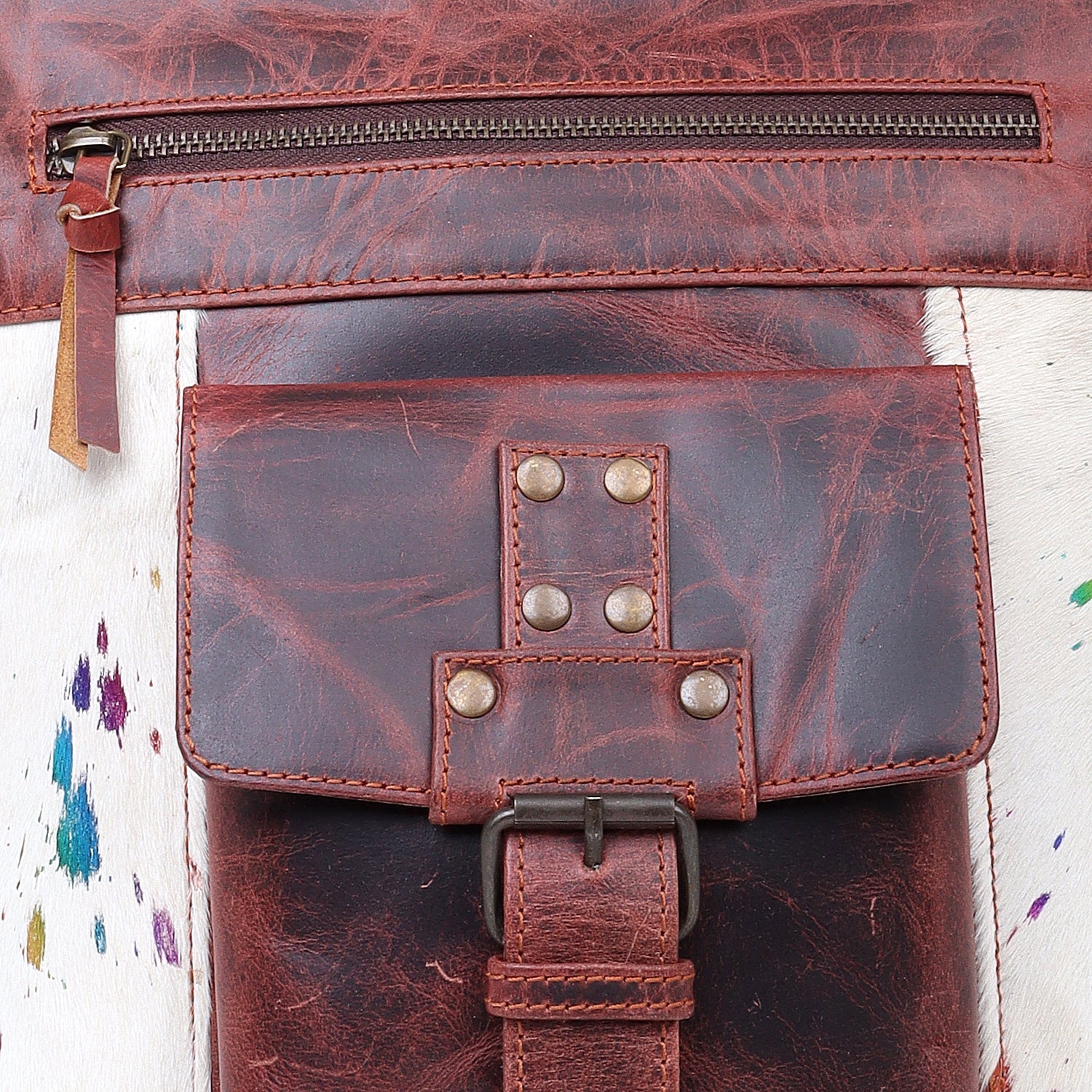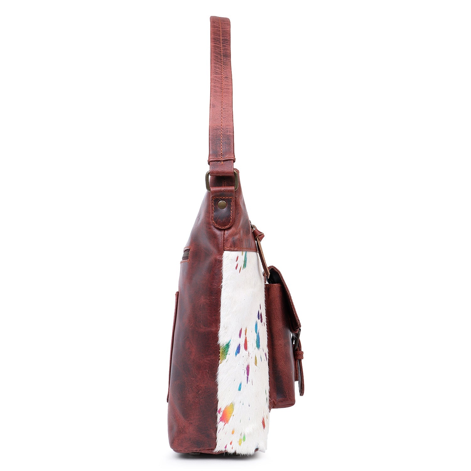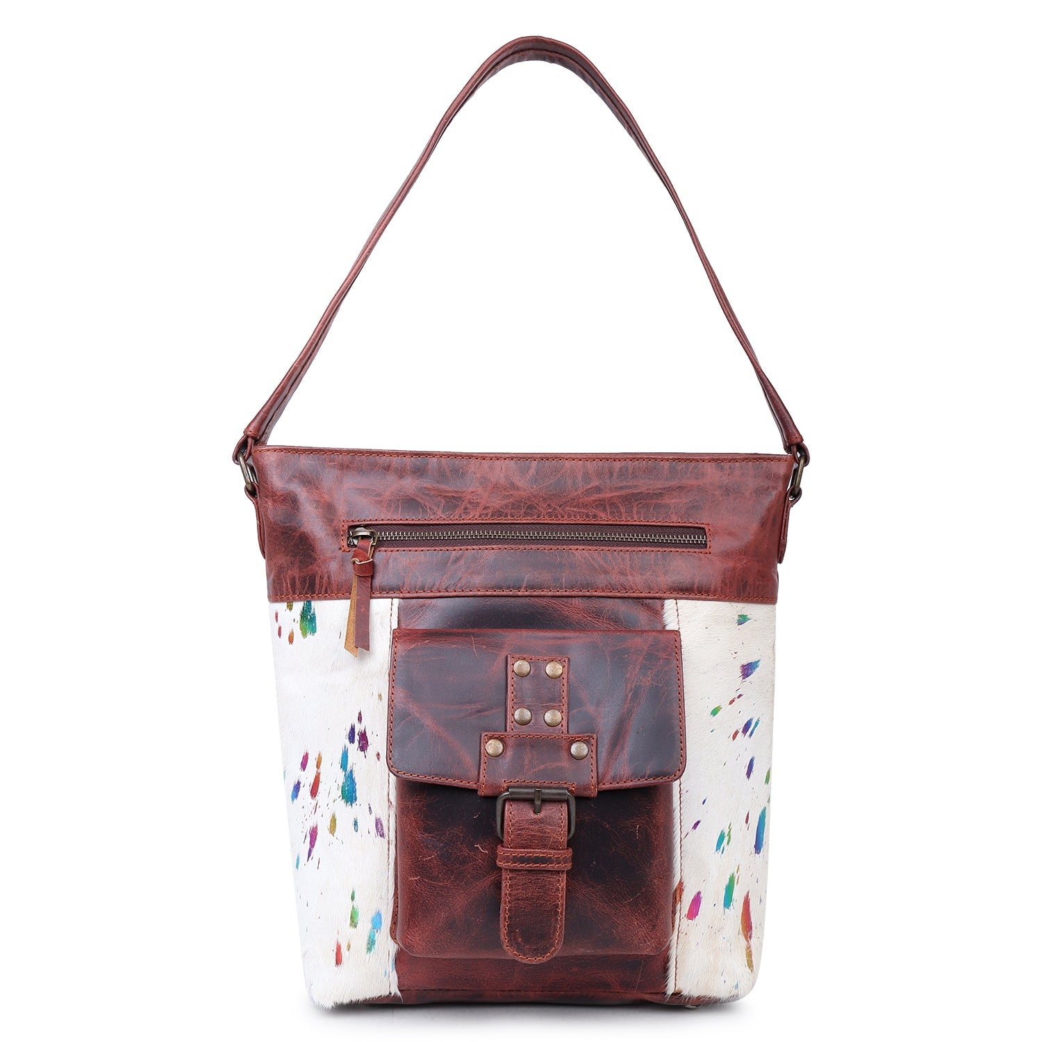 Sixtease's Multi White Leather & Hairon Hobo Bag: Refreshing White with Multicolor Accents - Effortless Elegance with a Pop of Personality!- (SB-3443)