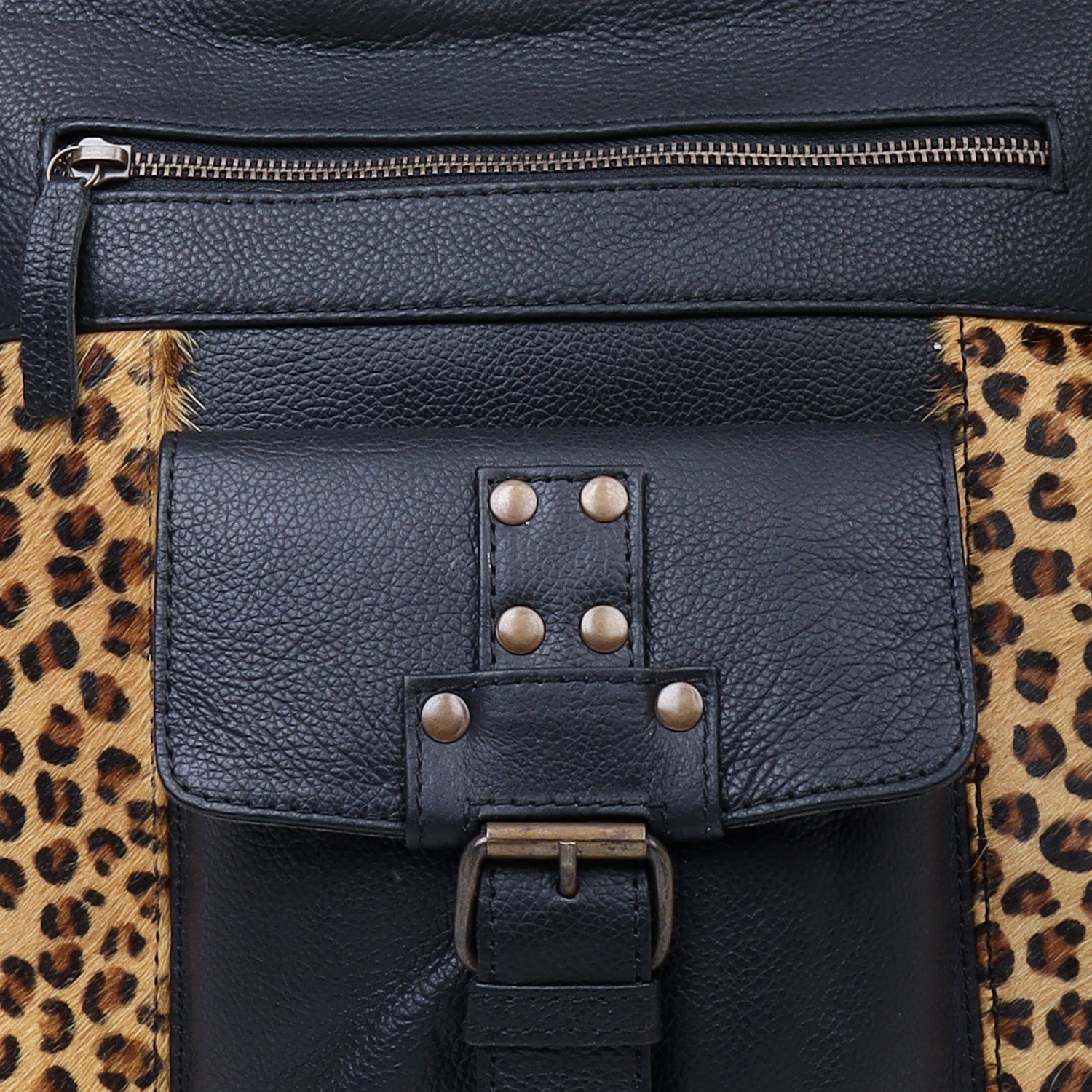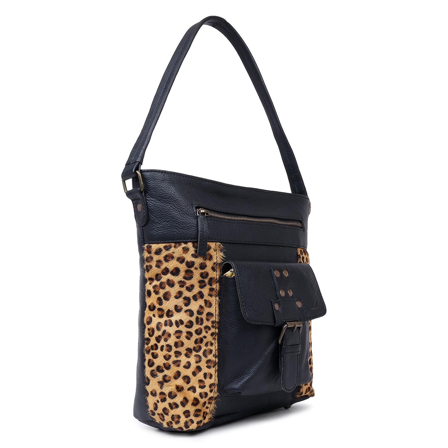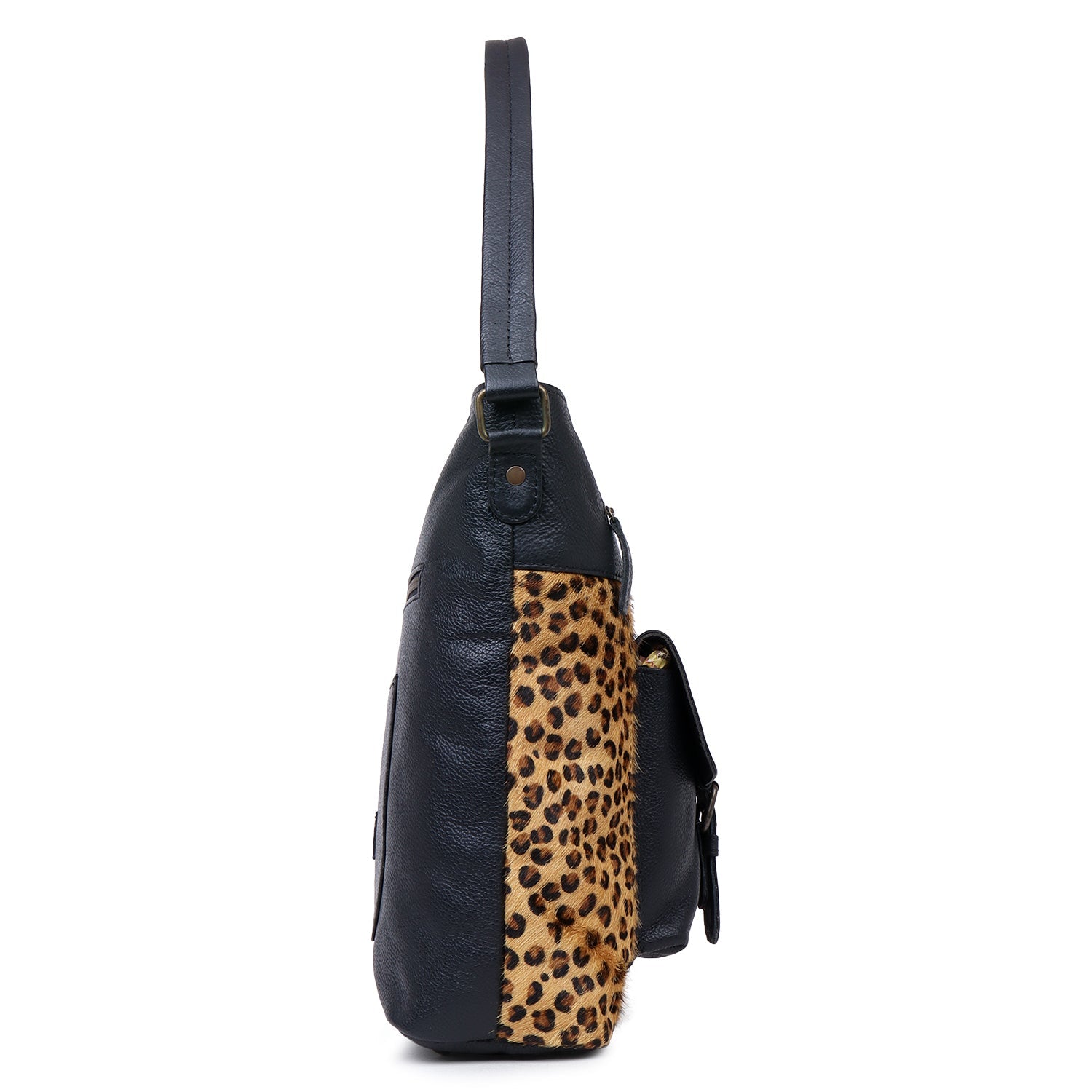 Sixtease's Leopard Print Leather & Hairon Hobo Bag: Wildly Chic Leopard Print on Luxurious Leather - Make a Statement with Every Stride! - (SB-3445)