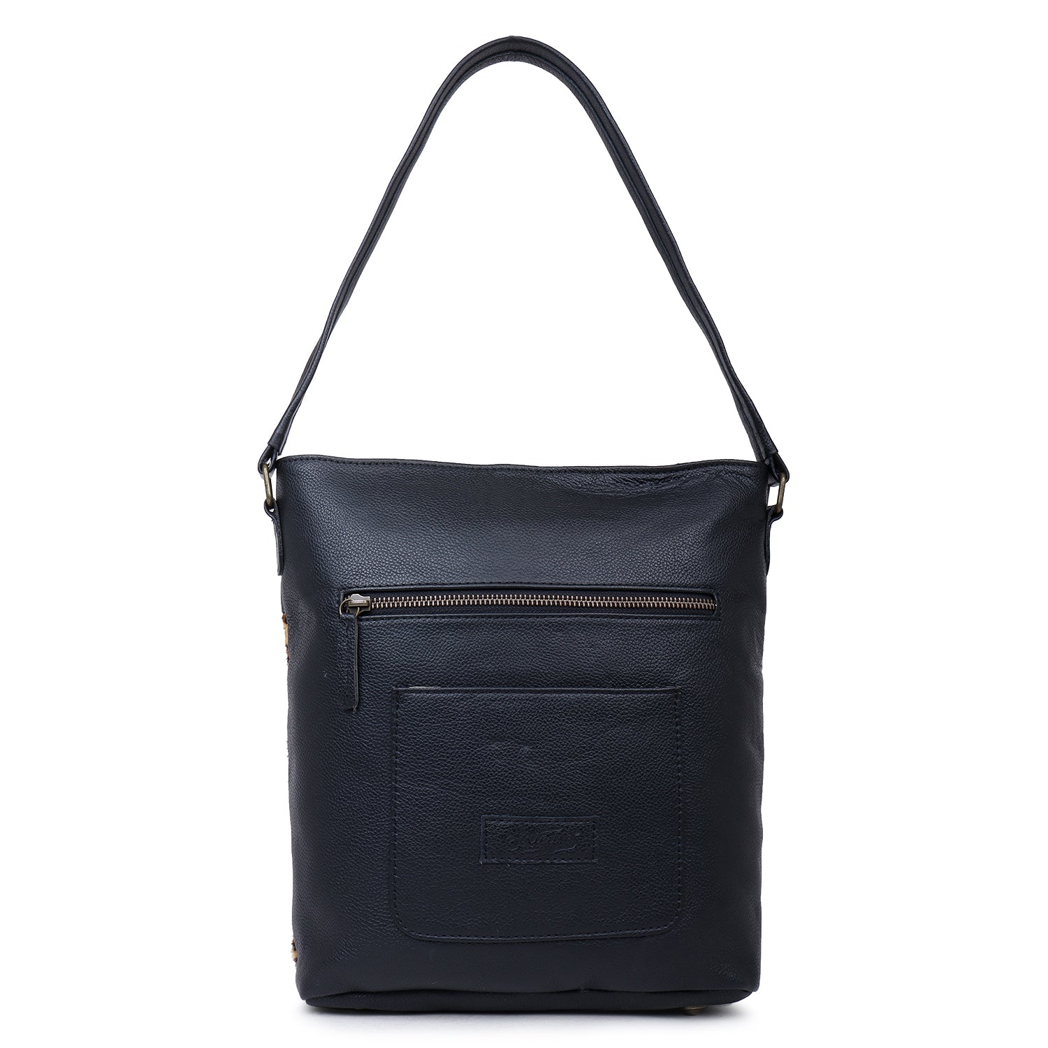 Main compartment with 1 Zip pocket and 2 slip pocket with leather detailing