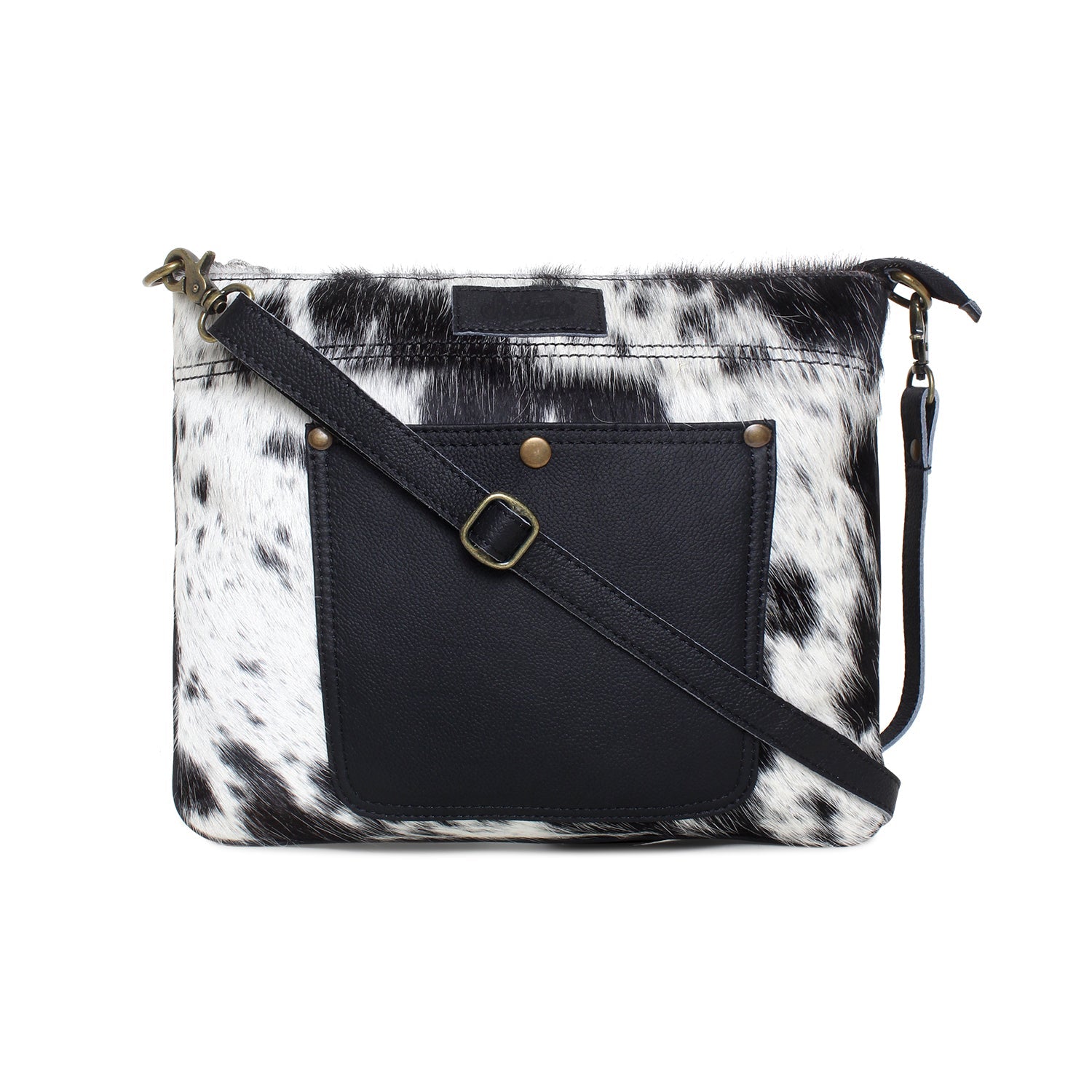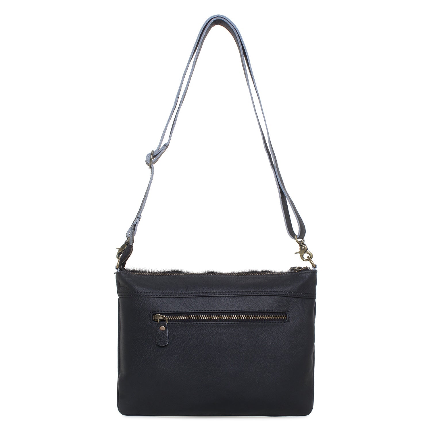 Sty Gear/Black Leather & Hairon Shoulder Bag by Sixtease - City Chic: Sleek Style for Urban Adventures! - (SB-2050-B)