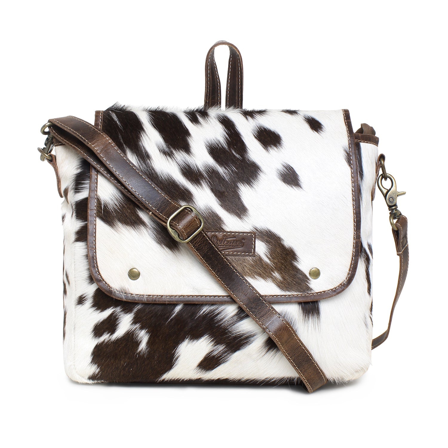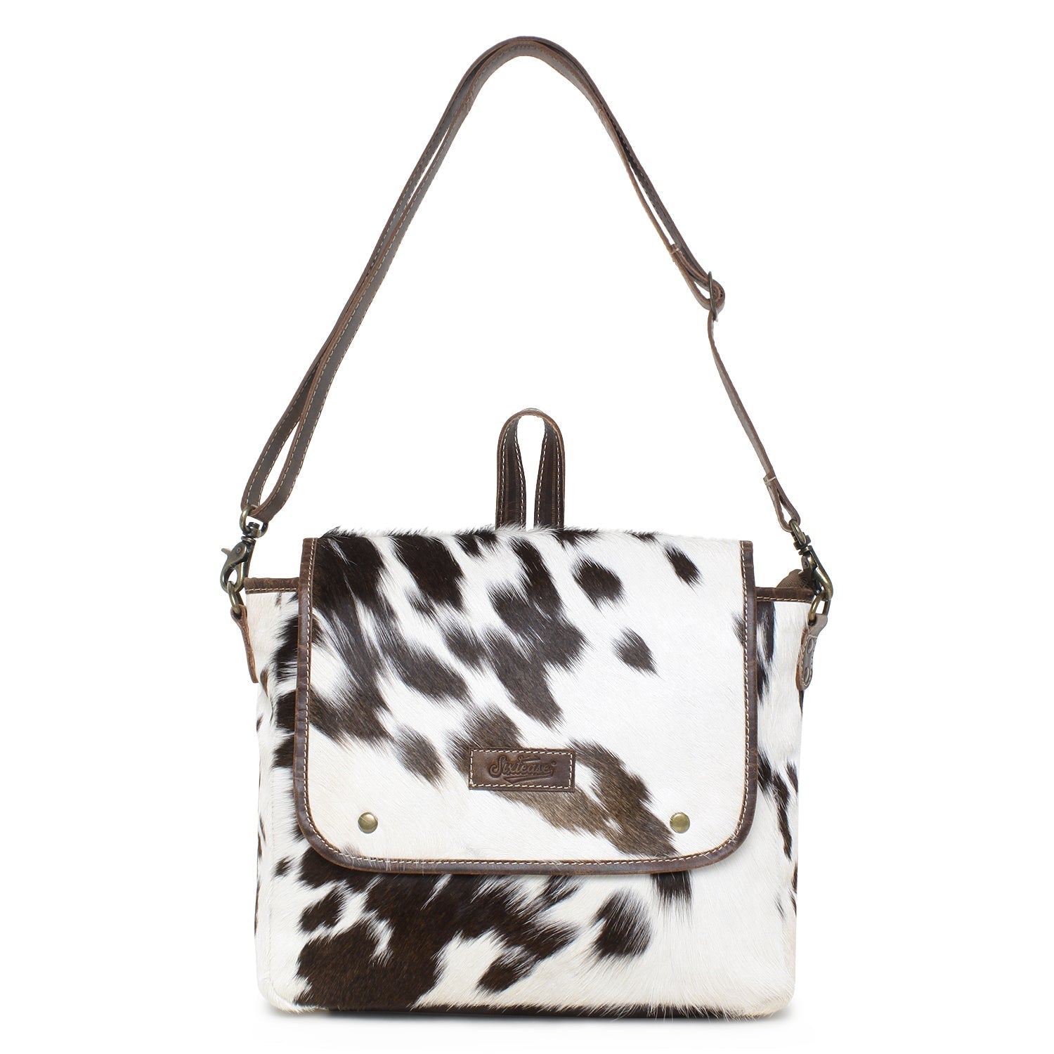 Introducing Sixtease's Leather & Hair Shoulder Bag—a perfect blend of style and functionality. Outside, discover a slip pocket with a snap closure in front, and a zip pocket at the back. Inside, the main compartment features one zip pocket and two slip pockets, ensuring organized storage. The poly cotton step logo printed lining and antique finish metal fittings add sophistication. With dimensions of 10 H x 12 W x 3 D inches and a 52" adjustable shoulder strap, it offers comfortable carrying. Secured with a YKK brass zipper closure, this bag is a stylish and practical accessory for any occasion. Elevate your ensemble with Sixtease's Shoulder Bag.