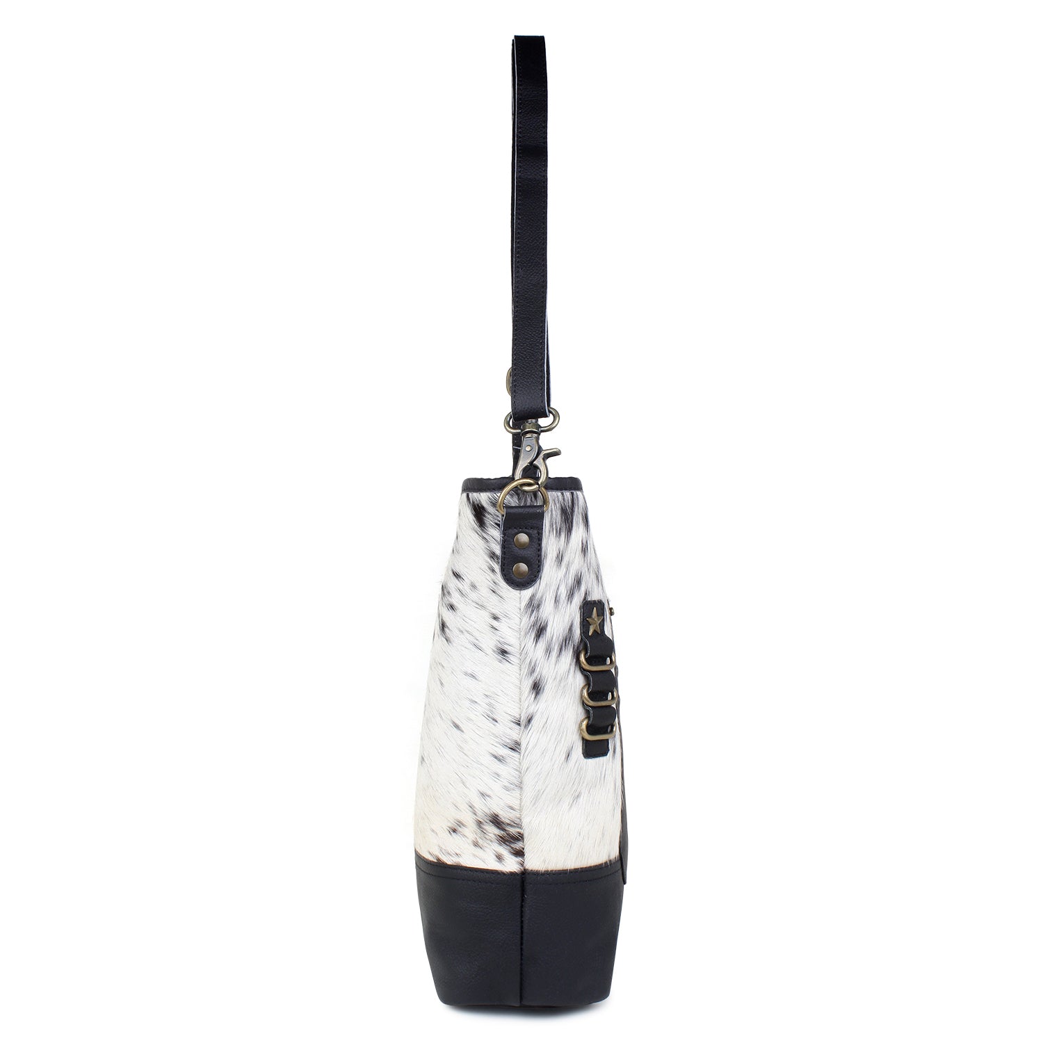 Ryan/Black Leather & Hairon Shoulder Bag by Sixtease - Urban Elegance: Effortlessly Chic for City Adventures! - (SB-2054-B)