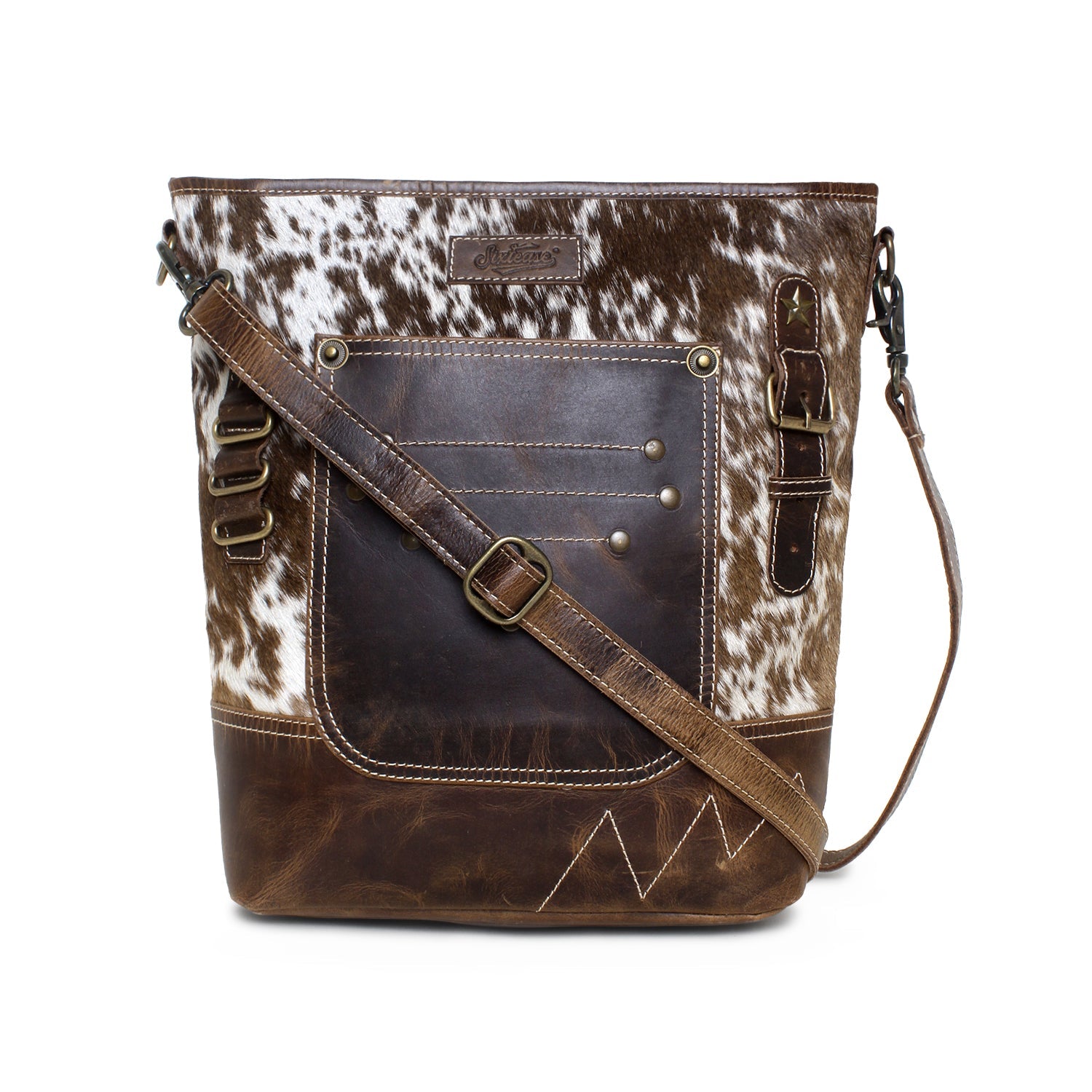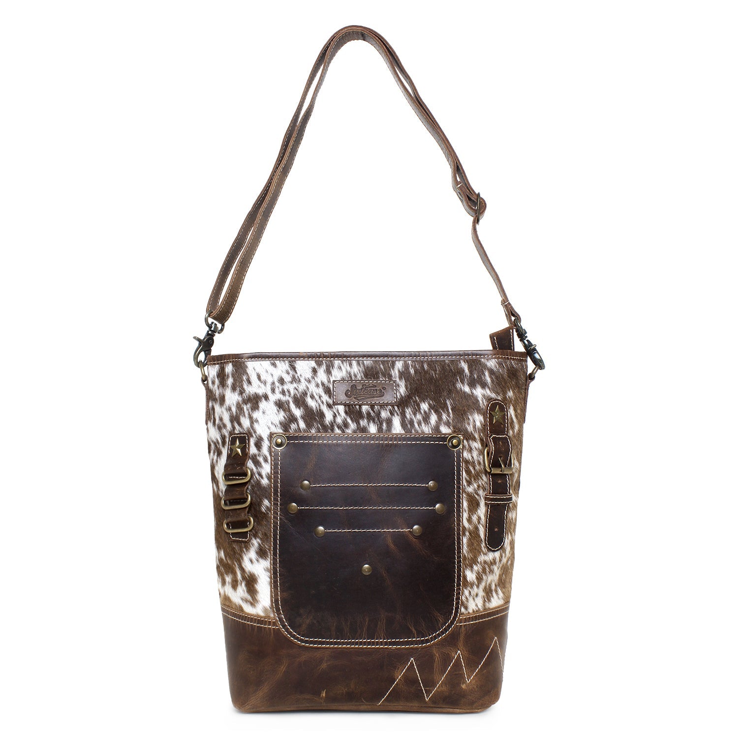 Ryan/WT Brown Leather & Hairon Shoulder Bag by Sixtease - Timeless Style: Classic Elegance for Urban Explorations! - (SB-2054-C)