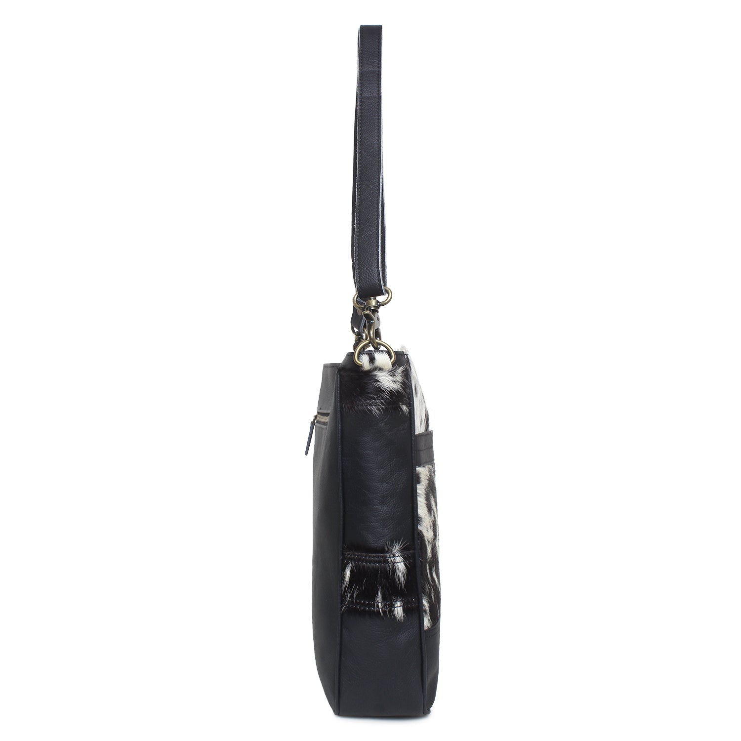 Serene Tone/Black Leather & Hairon Shoulder Bag by Sixtease - Urban Elegance: Effortlessly Stylish for City Adventures! - (SB-2059-B)