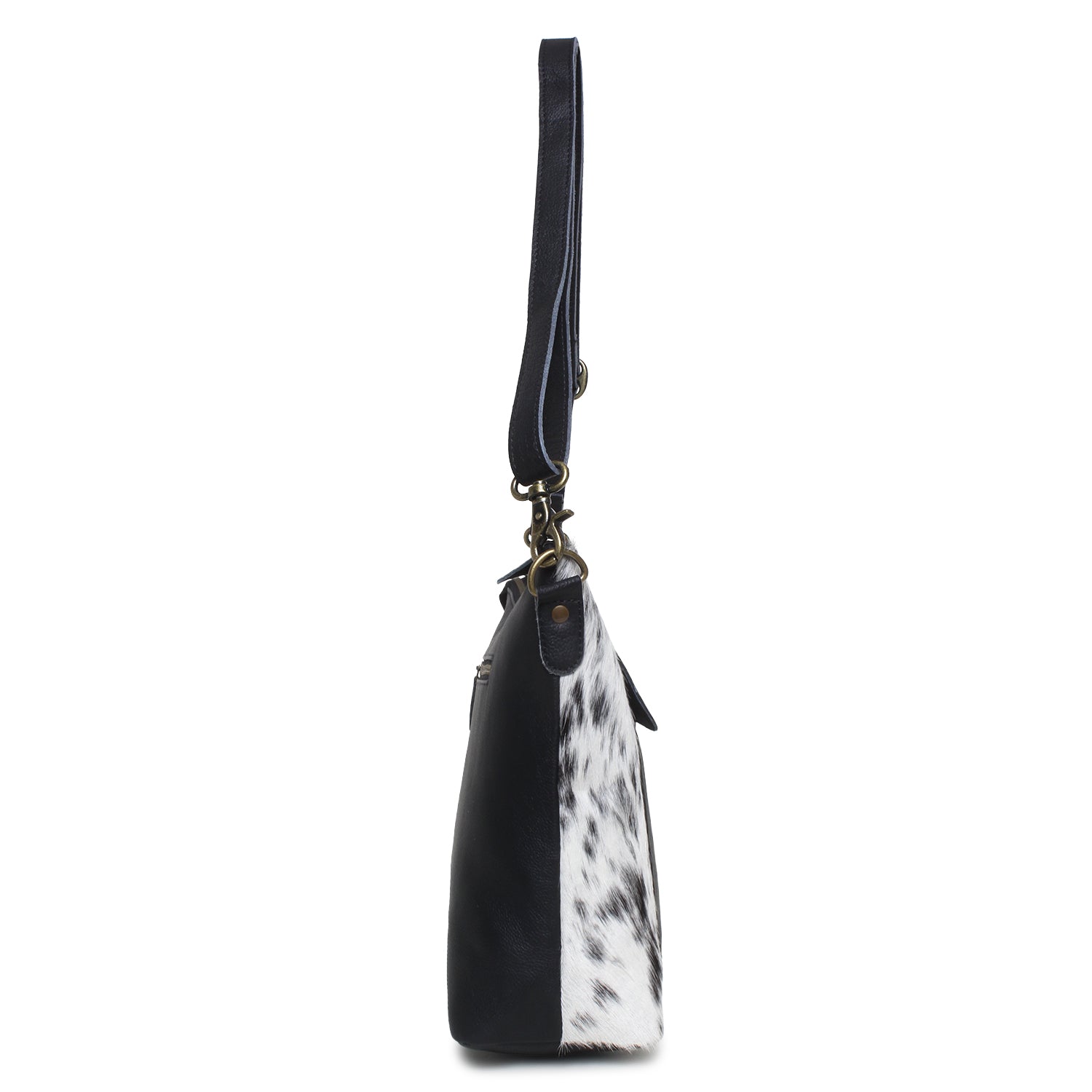 Ciao/Black Leather & Hairon Shoulder Bag by Sixtease - City Chic Companion: Effortless Style for Urban Explorers! - (SB-2063-B)