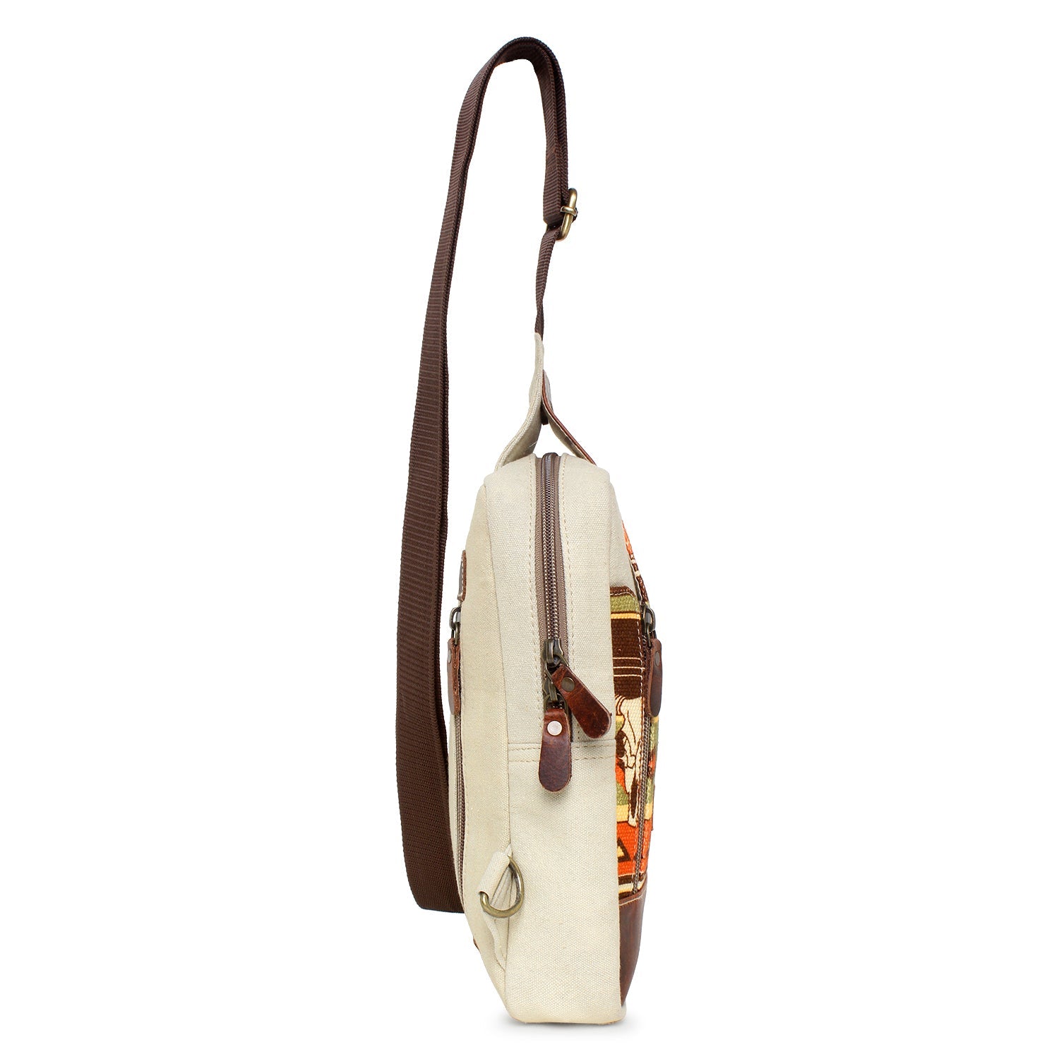 Sixtease Up-cycled Canvas Travel Sling Bag: Journey in Sustainable Style, Where Convenience Meets Eco-Friendly Craftsmanship! - (SB-4180)