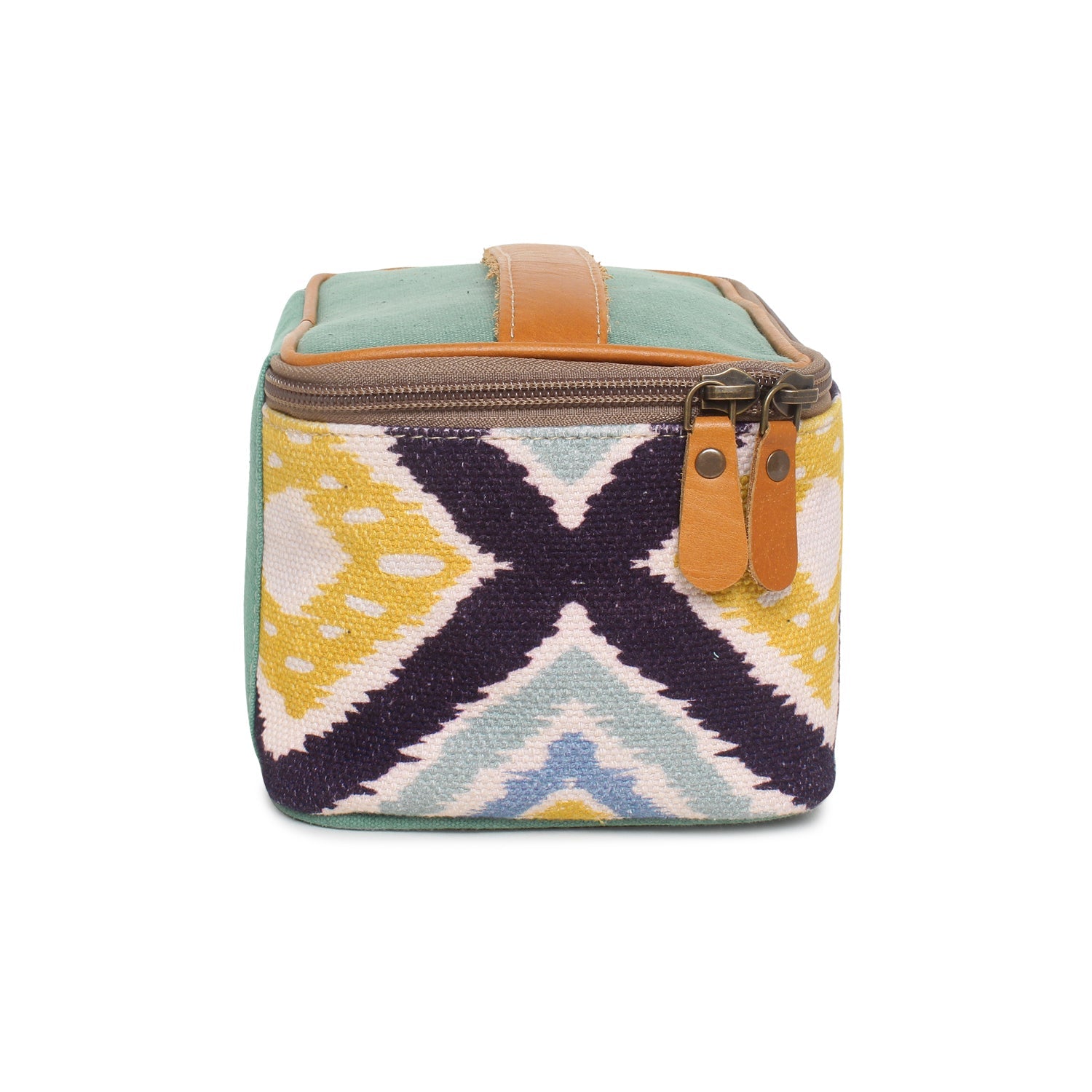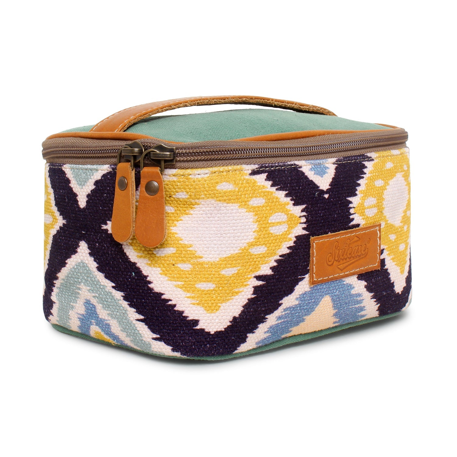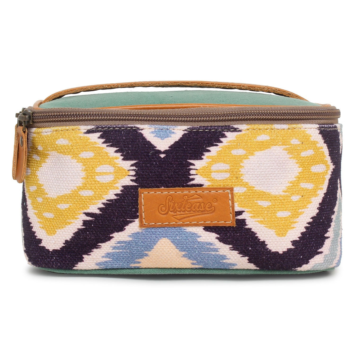 Introducing the Up-cycled Canvas Utility Bag by Sixtease – your compact yet versatile organizer for everyday essentials. Unzip the spacious main compartment to reveal four partitioned sections, perfect for keeping your items neatly organized. Plus, there's a handy zip pocket inside for extra security. Lined with our signature Step Logo printed poly cotton and finished with antique premium fittings, this bag measures 4.5" x 8" x 5". With a convenient 2" drop handle and genuine YKK zipper closure, it's the perfect companion for staying organized on the go. Elevate your organization game sustainably with Sixtease.
